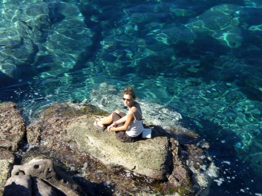 Zo ook Amber die als een diva bij de rotsen zit.