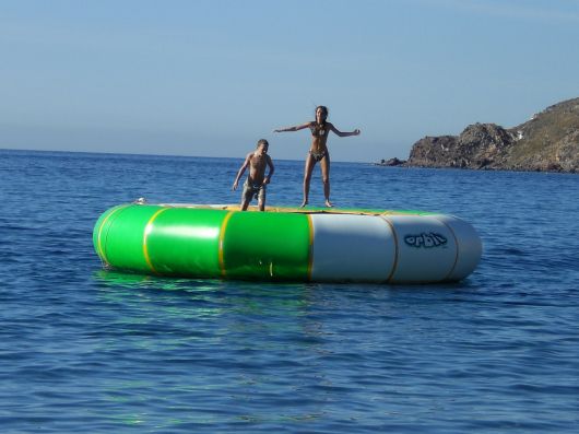 Gideon en Amber op het springkussen.