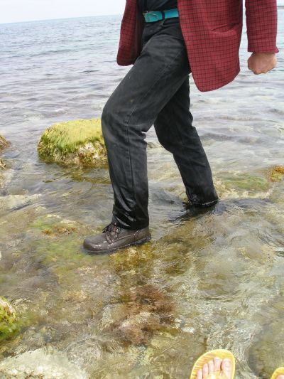 Toch gelukt om er zonder vallen uit de zee te komen.