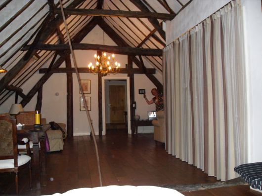 Een deeltje van onze kamer. Allemaal in oude staat. Met prachtige oude balken.