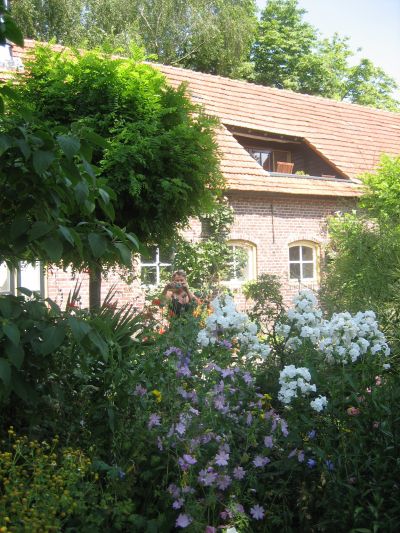 Een heel klein stukje van de tuin met op de achtergrond boven ons balkon. Links achter mij is dan het appartement.