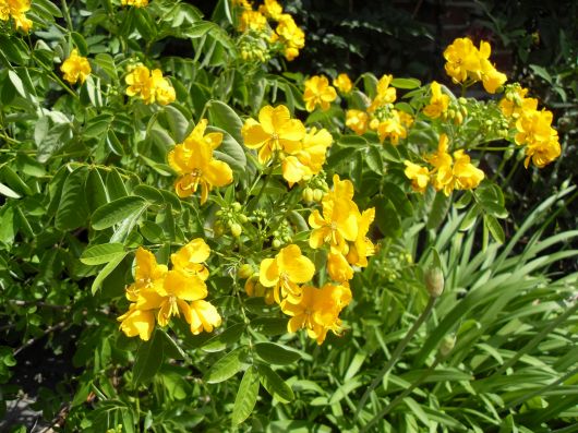 De tuin staat vol met potten die elke dag verzorgd moeten worden. O.a. deze plant is in 10 jaar wel 1,5 meter hoog geworden met prachtige bloemen. Dan moet je wel heel veel van tuinieren houden, want alles moet in de winter ook weer naar binnen.