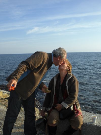 Tussen de broodjes en koffie door nog even een kus.